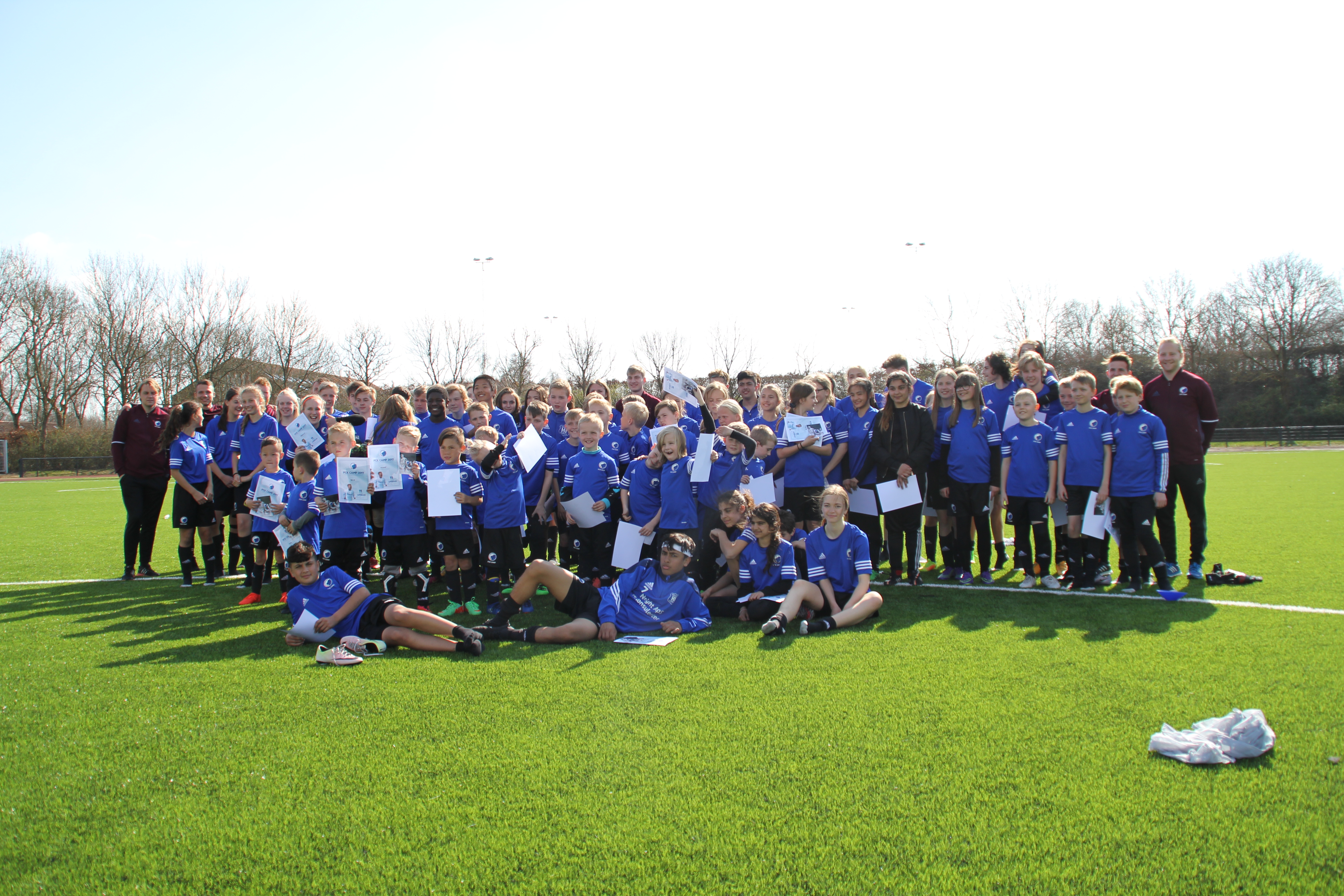 børn og unge. 86 super motiverede piger og drenge indtog stadionbanen, hvor FCK stillede med 10 trænere,